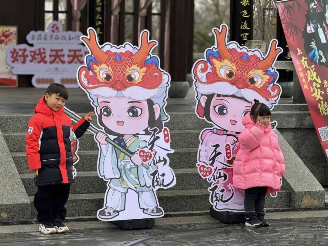 安庆园内,与精彩演出一起到来的,还有省黄梅戏剧院原创黄梅戏IP形象——黄梅Q宝贝,Q宝贝们可爱的脸庞收获了一大批观众朋友的喜爱,其中不乏活泼可爱的小朋友们,他们兴奋的与Q宝贝合影:“这是七仙女和董永,他们我都认识!”