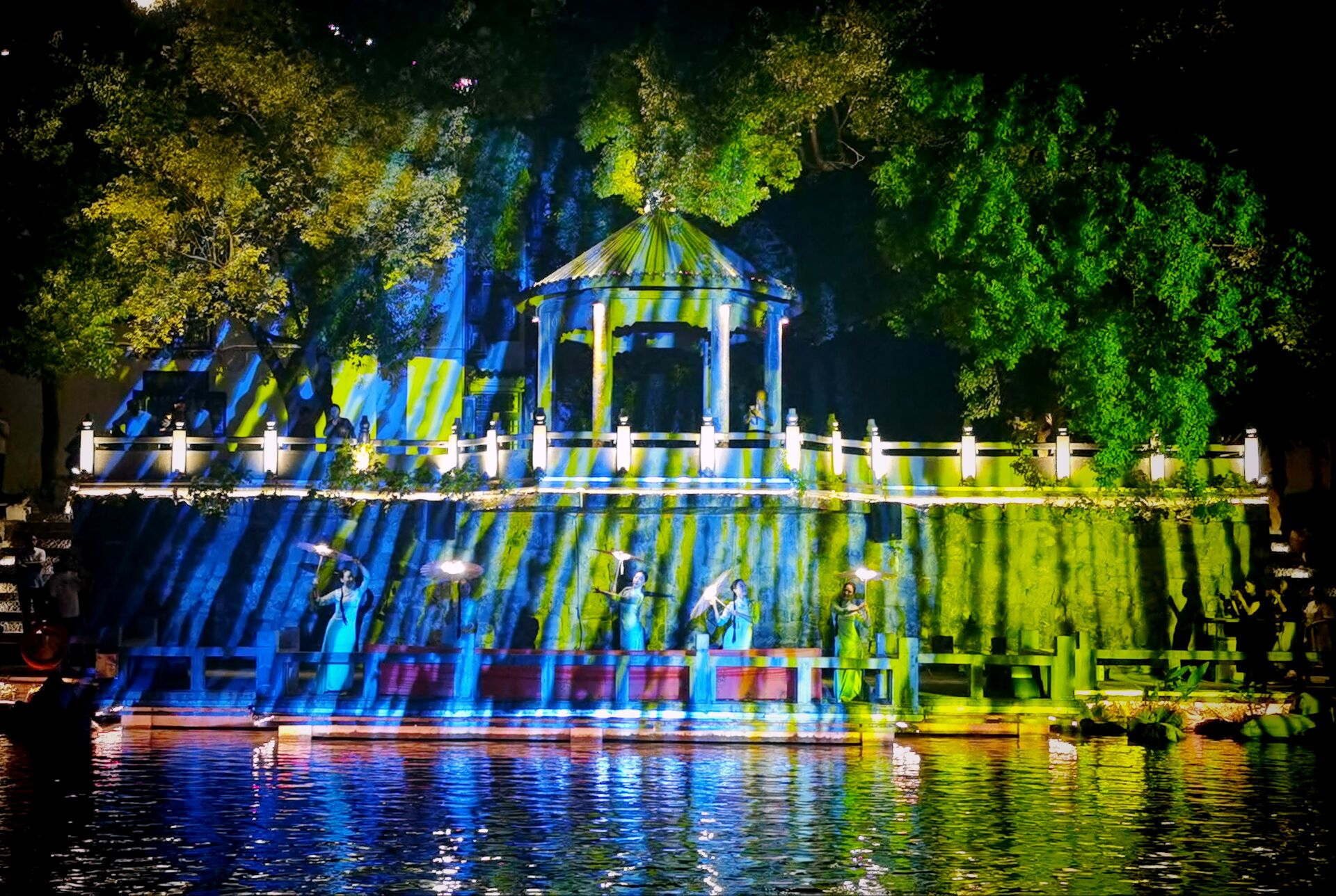 古镇的夜空下,琴声悠扬,舞姿曼妙,一场场精彩绝伦的演出在古镇的各个角落上演,吸引了众多游客驻足观赏。