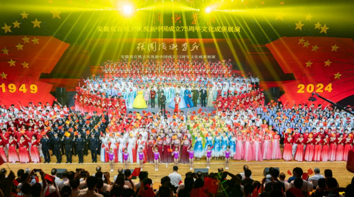 为庆祝中华人民共和国成立75周年,全面展示安徽省直机关在文化艺术领域的丰硕成果,9月29,由中共安徽省直属机关工作委员会主办、安徽省歌舞剧院承办的“安徽省直机关庆祝新中国成立75周年文化成果展演”活动在安徽体育馆盛大举行。