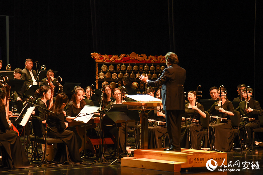 演出现场,来自安徽乐团民族管弦乐团的乐手们以高超的演奏技巧及民族管弦乐特有的音乐语言,展示了凌家滩悠久的历史文化,现场观众反响热烈。(来源:人民网安徽频道)