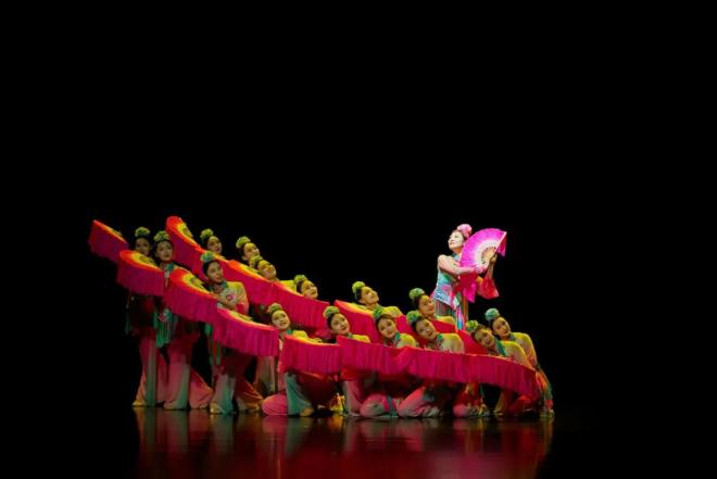 《风摆柳》则以国家级非物质文化遗产“花鼓灯”的经典动律“脚下梗着走、上身风摆柳”为基因,巧妙地将田野锣鼓的节奏转化为当代节拍,以“柳”写“人”,以“风”喻“势”,展现了东方女性的山河气韵,描绘了幸福生活的美好图景。