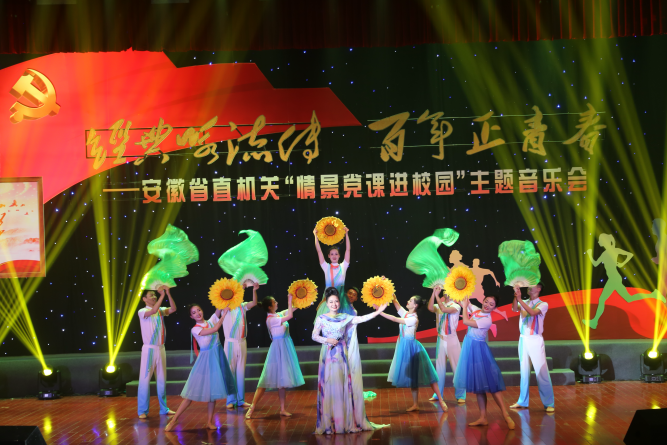 此次情景党课主题音乐会由安徽省直机关主办、安徽省歌舞剧院(安徽省演出公司)承办,以“经典咏流传 百年正青春”为主题,立足大学生成长实际,集思想性、时代性、政治性、教育性、艺术性和观赏性于一体,紧扣新时代主旋律、传承红色基因、弘扬革命精神,教育引导新时代广大学生坚定理想信念,永远跟党走,激发爱国情感,永远与时代同频共振,展现新担当新作为。