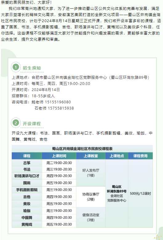 蜀山夜校|井岗镇金湖社区市民夜校开启报名!让我们一起探索夜校课程的魅力!